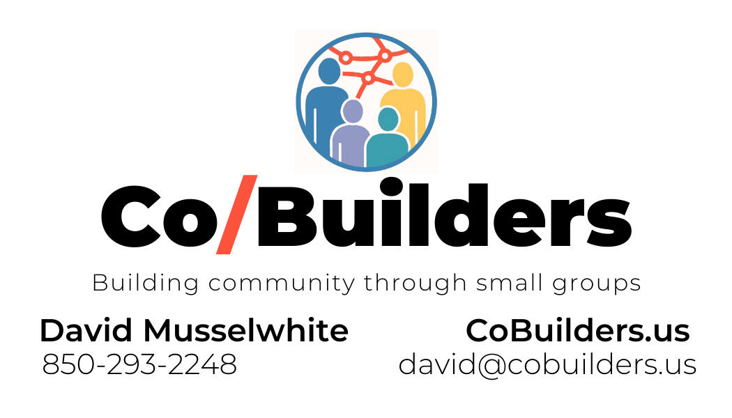 Hi, I'm David Musselwhite, the organizer of Co/Builders. I bring over 40 years of experience in business IT administration. My career includes accomplishments such as developing systems for jet engine parts manufacturing, analyzing property records for a CPA firm, and leading IT operations for the local county government in Pensacola, where I directed significant technology implementations.In the past, I’ve enjoyed competitive tennis, scuba diving, piloting small planes, skydiving, participating in triathlons, running marathons and aiding the international Bible teacher Major Ian Thomas through out England, Europe, and much of the US.Since retiring in 2015, I've been an advocate for community open access fiber-optic networks, helped organize startup business events, managed a co-working space and now I am engaged in providing opportunities for people to connect through small groups.